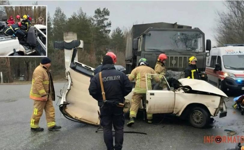 Інцидент стався о 07:28. Рятувальники за допомогою спеціального обладнання деблокували водія з салону легковика. Його передали працівникам медичної допомоги.