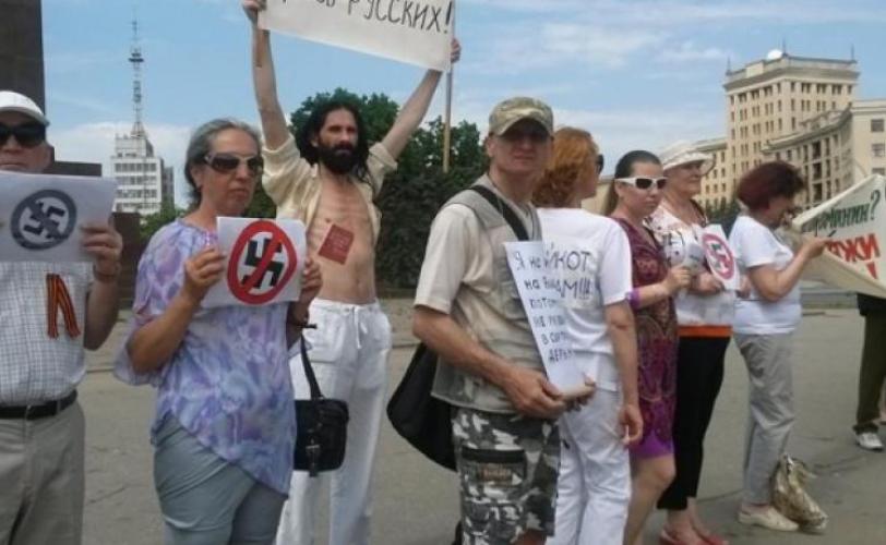 А в Харькове около 300 человек на площади в центре города душевно бойкотируют выборы и обсуждают пути вхождения в состав России (на фото).