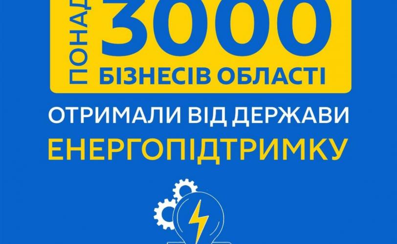 Понад 3300 бізнесів у нашій області отримали допомогу на енергостійкість. Держава виплатила їм 33,5 мільйони гривень.