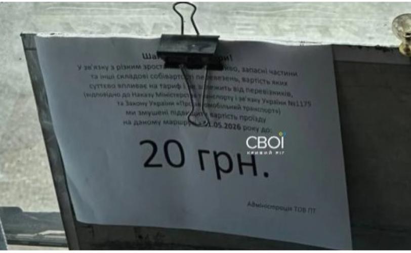 З 1 травня вартість проїзду у маршрутках Кривого Рогу складатиме 20 гривень. Водії вже попереджають пасажирів про підвищення ціни.