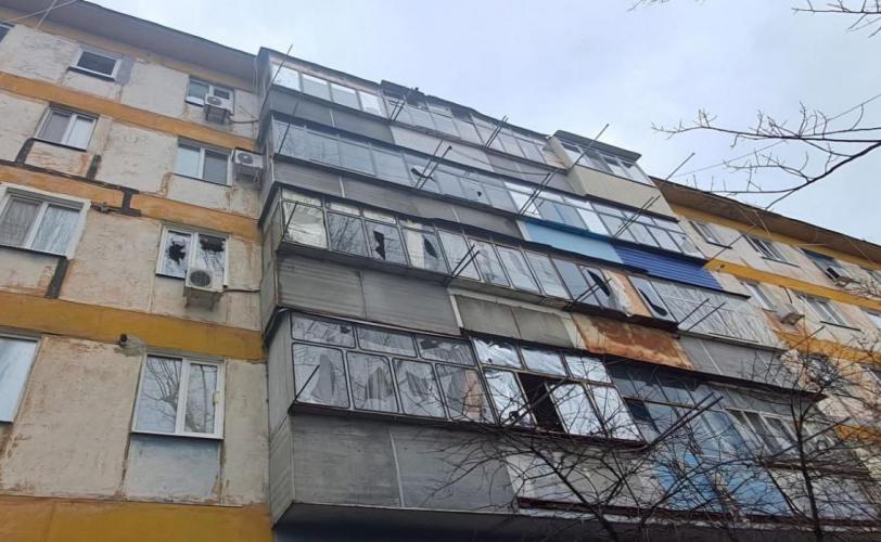 Побиті вікна та балкони в кількох багатоповерхівках. Також понівечена інфраструктура.