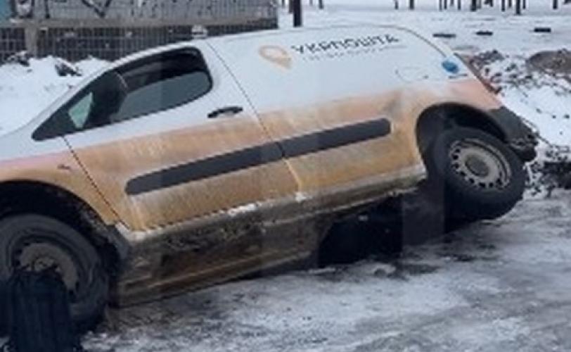 За попередньою інформацією, водій припаркувався біля відділення, але через слизьку дорогу автівка почала ковзати і обома правими колесами впала у яму «Теплоцентралі». Керманич автівки не постраждав