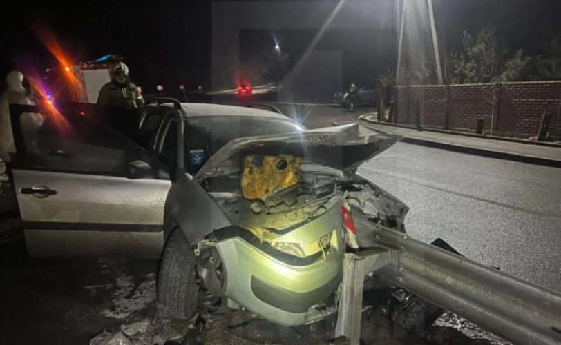 За попередніми даними, внаслідок зіткнення з відбійником в автівці виникло загоряння моторного відсіку.