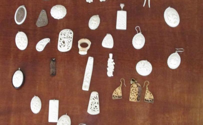 Другой мастер - Эдуард Енбулатов - продемонстрировал свое искусство резьбы по кости. Декор его украшений особенно богат орнаментальными вариантами. Здесь Эдуард применяет все виды геометрического орнамента. Излюбленным украшением мастера является «вичковий» орнамент. Обычно на гребне вырезается от трех до пяти розеток, контур которых состоит из маленьких кружочков - вичек.