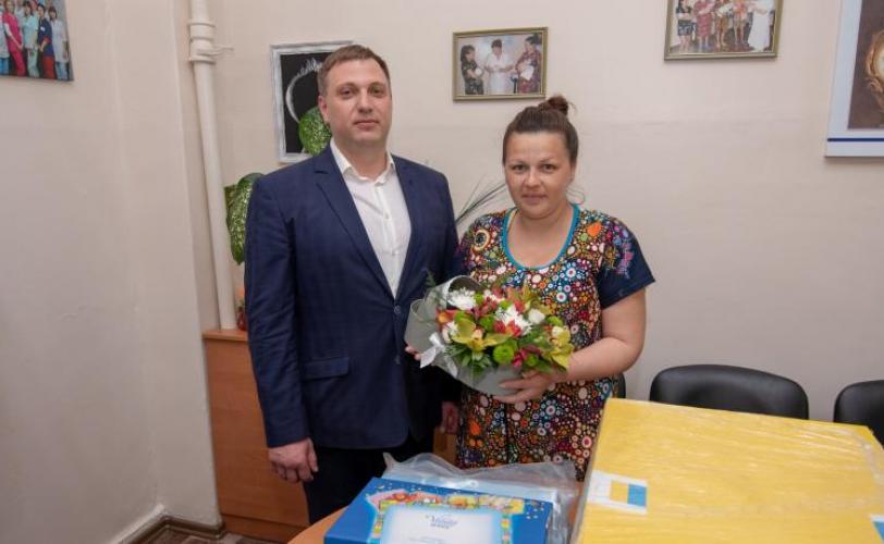 От имени городского головы Андрея Белоусова счастливую маму, подарившую Каменскому нового жителя, поздравил заместитель мэра Константин Саусь.