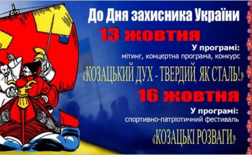 Заходи розпочнуться у п’ятницю, 13 жовтня. О 14.00 біля музею історії ПАТ «ДМК» відбудуться мітинг, святкова концертна програма за участю творчих колективів КСЦ «Дніпровець» та конкурс «Козацький дух – твердий як сталь!».