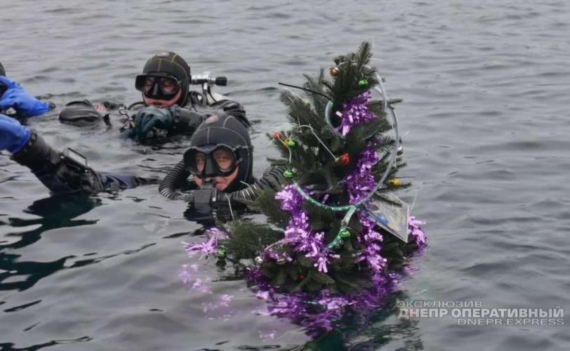 В Днепре местные дайверы совместно с аквалангистами из других городов установили новогоднюю елку на дне озера. Такая традиция существует уже много лет и успела понравиться любителям подводных погружений.