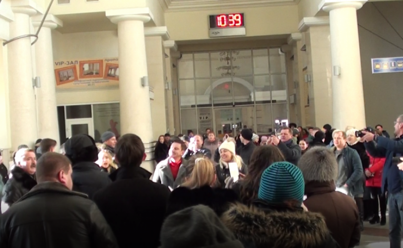Напомним, что в Запорожье горожане пели на вокзале песню «Родная улица» из кинофильма «Весна на Заречной улице», в Харькове – «Старый клен», Одессе - «Смуглянку».