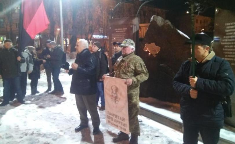 Мероприятие началось в начале седьмого в районе «Дружбы». Несколько десятков человек с факелами, в сопровождении полицейских, с национальными флагами прошли по скверу проспекта Свободы до мемориального камня Героям АТО, где и прошел митинг. Его темой в основном было историческое соответствие событий 1918 года с нашими днями. Все обошлось без происшествий.