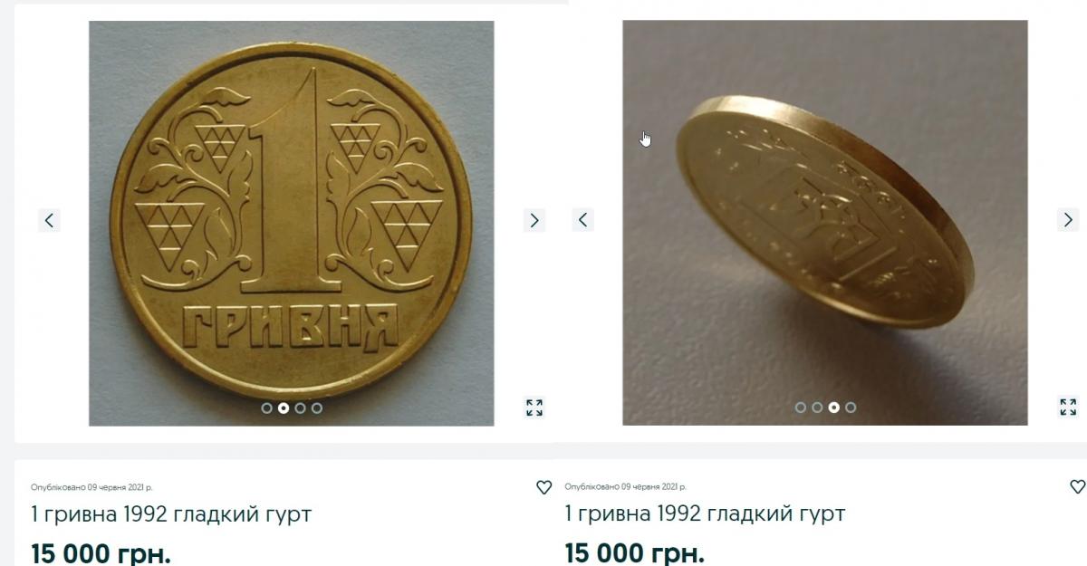 В Украине монета номиналом 1 гривна выставлена на продажу за огромные деньги. Монету 1992 года можно сбыть за 15-30 тысяч гривен. Уникальный экземпляр для коллекции нумизматов выставлен на специализированные сайты продаж.