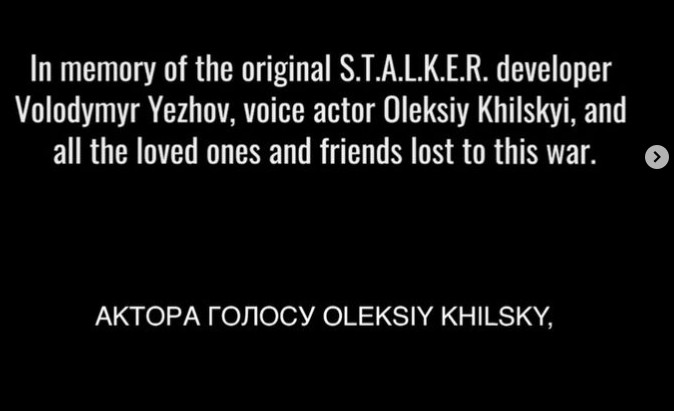 «В пам’ять про розробника оригінального S.T.A.L.K.E.R. Володимира Єжова, актора озвучення Олексія Хільського та всіх наших близьких та друзів, втрачених на цій війні», — сказано в титрах War Game: The Making of S.T.A.L.K.E.R. 2.