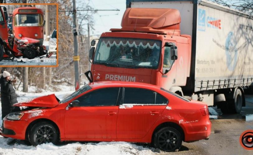 У суботу, 21 лютого, у Дніпрі на Західному шляху сталася серйозна аварія. Поблизу ДЗМО зіткнулись Volkswagen та вантажівка Renault. За попередньою інформацією від поліцейських, постраждала дитина. Її відвезли до лікарні.