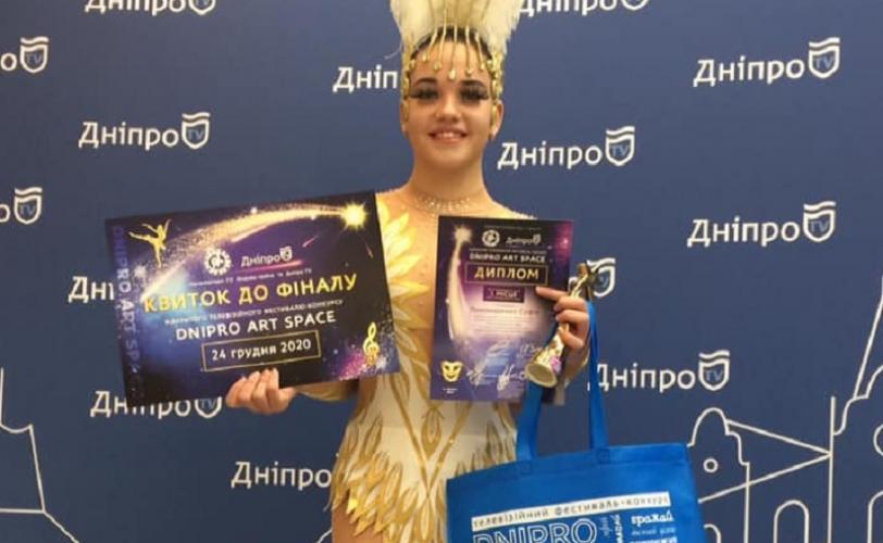 София Пономаренко, воспитанница циркового коллектива "Арена смелых" (руководитель Вита Николаевна Кривко), представляла каменской кино-концертный зал "Мир" на открытом телевизионном конкурсе DNIPRO ART SPACE.