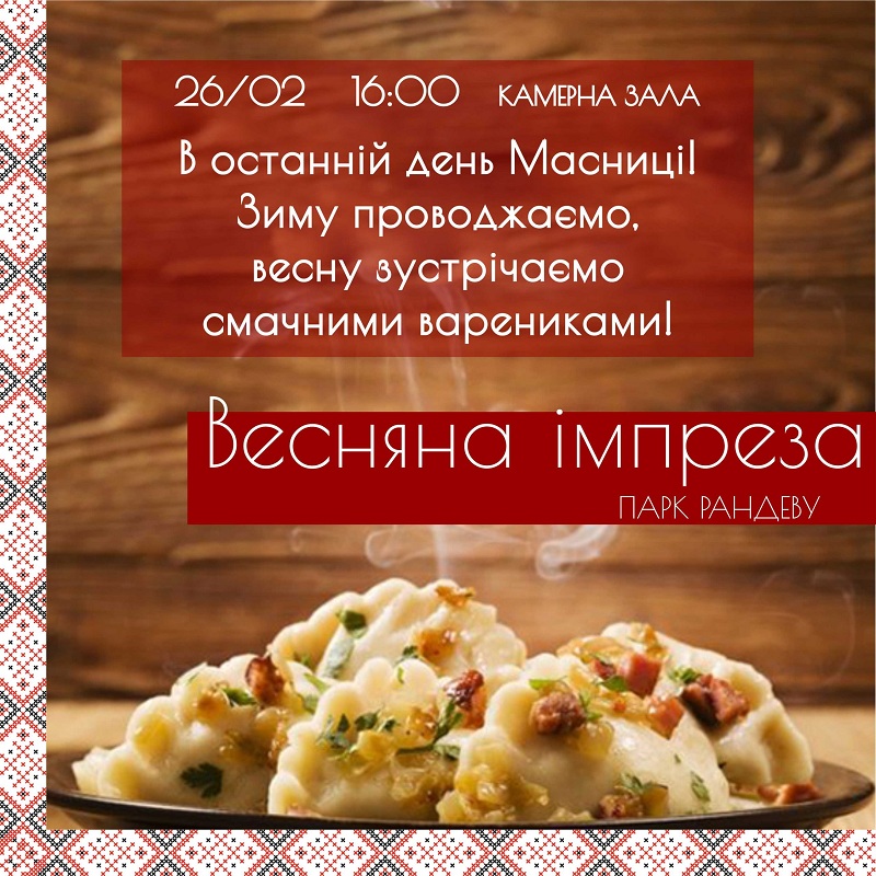 Як підкресли в театрі оскільки вечірка буде проходити в останній день Масниці, яказ давніх давен була на території України одним з найвеселіших свят, то вона буде сповнена українського колориту. А ще всі присутні зможуть поласувати в антракті у театральному кафе смачними варениками із сиром, маслом та сметаною.