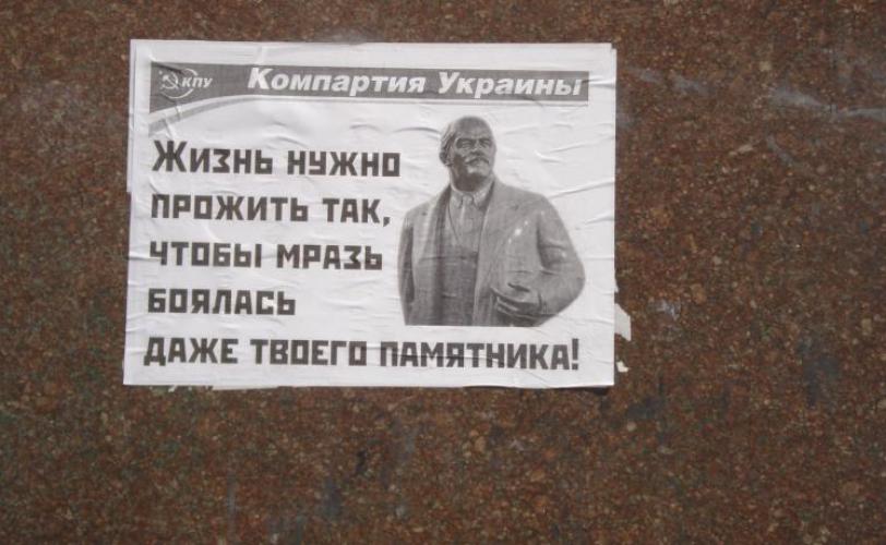 И, наконец, депутаты, как и ожидалось, не захотели даже рассматривать вопрос о восстановлении памятника Ленину, незаконно снесенному 22 февраля в Днепродзержинске. Оно и понятно – злой дедушка Ленин очень мешал нам хорошо жить! Ведь посмотрите – только демонтировали памятник, как в Днепродзержинске сразу все «покращилось»! И дороги вдруг отремонтировались, и продукты подешевели, и все долги по зарплате чудесным образом выплатились, и транспорт заработал без перебоев, и безработица исчезла! Что, вы этого не заметили, уважаемые читатели? Ну тогда вы очень несознательные граждане… А если серьезно, то почему-то частенько вспоминается листовка, которая появилась на постаменте снесенного памятника Ленину в Днепродзержинске и висит на нем вот уже два месяца, мы разместили ее фото в начале этой статьи. Может, слова там и резкие, но призадуматься они заставляют…
