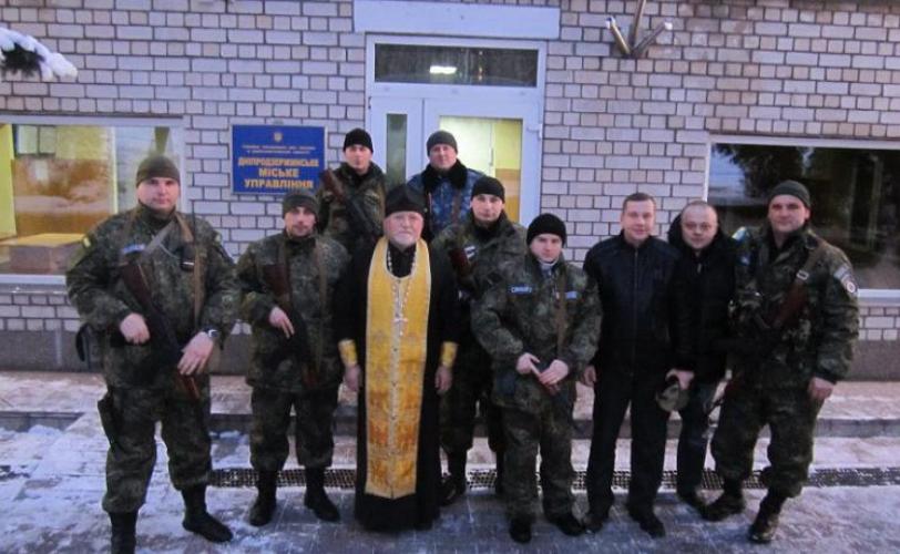 Перед отъездом на счастливую дорогу и благополучное возвращение каждого бойца благословил настоятель протоиерей о. Николай церкви «Святой Покровы» Украинской православной церкви Киевского Патриархата.