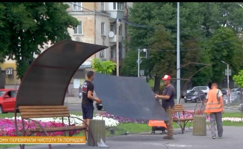 в центральному сквері по проспекту Свободи встановили навіси с лавками,