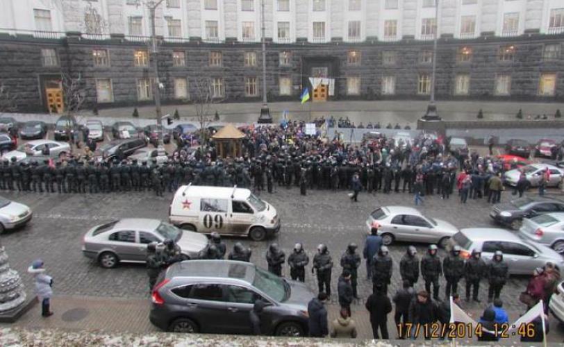 Сегодня под стены Кабмина в 10.00 пришли представители профсоюзов транспортников, ЖКХ, антиаваковский Майдан, «Самооборона Киевской области», активисты движения АНТИВОЙНА, «Офицерский корпус», ну а в противовес, конечно же – спецназ и часть батальона «Айдар» (который утихомиривал Винницу). Лозунги все те же: «Украина на пороге Голодомора!», «Кому война, а кому мать родна!», «Где наши зарплаты?», «Олигархи захватили власть в Украине!» и т.д. Между собой люди самыми последними словами и матом крыли Порошенко, Яценюка, комбатов-предателей, иностранцев в правительстве, и разумеется, «лучшего мэра Европы», которого в народе называют «дебилом», В. Кличко. Кстати, именно Кличко, являясь мэром, отвечает за ЖКХ в городе Киеве. Транспортники не получают зарплату более четырех месяцев.