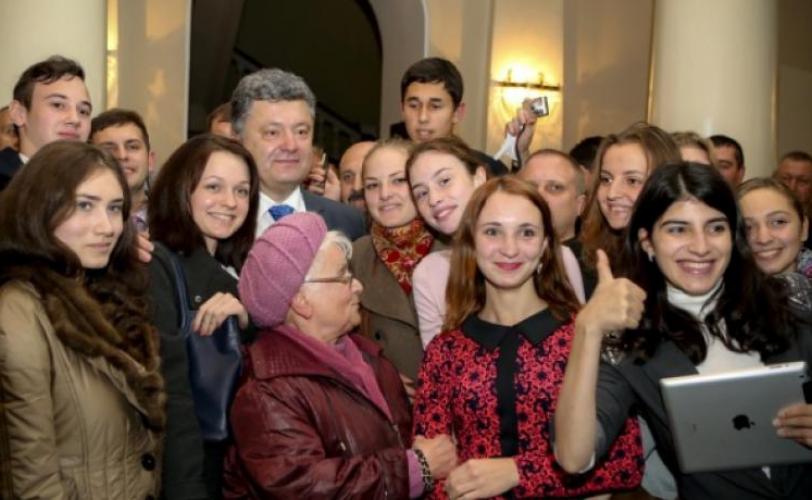 "Украина изменилась. Днепропетровск - спасибо!", - так Порошенко подписал фото, где он делает селфи со студентами.