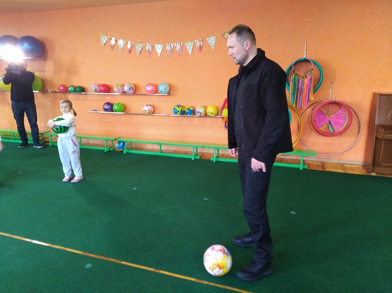 Сергей Шкарлет даже поиграл в развивающие игры в компьютерном классе, а в спортзале с удовольствием провел мини-тренировку по футболу с воспитанниками «Барвинка».