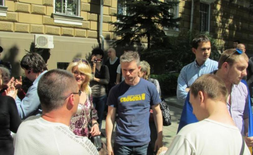 Не обошлось и без курьеза - к пикетирующим прокуратуру подошли несколько активистов "Свободы", в частности, днепродзержинец Максим Дорофеев, с которыми несколько человек сразу же затеяли жаркую дискуссию о судьбах страны, европейском выборе и плюсах и минусах заграничных ценностей. К счастью, дальше словесной перепалки дело не дошло - в конце концов все решили, что лучше жить в мире, чем воевать, и разошлись.