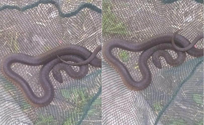 Пост в соцсети опубликовал днепрянин Сергей, который гостевал у брата на даче. Именно там змея и свалилась чуть ли не на голову. Хладнокровное животное было не агрессивным, глаза маленькие и круглые. Убивать ее не стали, а отнесли к реке.