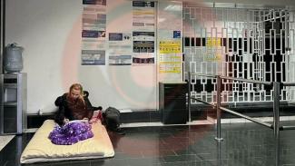 Те, кто в первой половине дня пятницы, 18 февраля, в Днепре приходили в Следственное управление ГУНП в Днепропетровской области на проспекте Слобожанском, 40, могли наблюдать необычную картину. В холле здания на матрасе разместилась женщина и вязала.