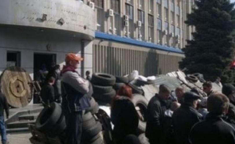 "Угрожая оружием и взрывчаткой, радикалы насильно удерживают около 60 граждан, не дают людям покинуть помещение и вернуться домой. То есть прибегают к средствам, которые используют террористы", - отмечает пресс-центр.