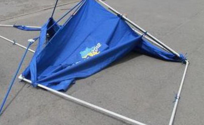 Как мы уже сообщали, в Днепродзержинске отмечены случаи нападения на агитационные палатки Партии регионов. К сожалению, это продолжилось и сегодня.