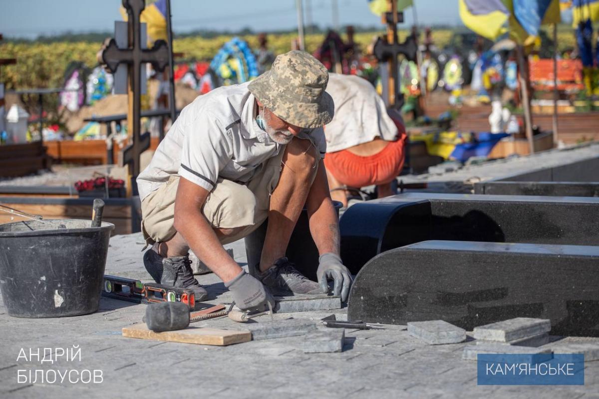 "Сьогодні перевірив хід робіт. Наразі виконали благоустрій на перших двох рядах могил, незабаром почнемо встановлювати пам’ятники. Робимо бетонну стіну, яка стане основним елементом меморіалу, міститиме хрест та пам’ятний напис. Поруч облаштуємо місце для квітів та лампадок.