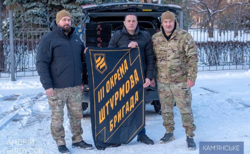 "Від міської ради Кам’янського передали нашим захисникам із 3-ї штурмової бригади, що входить до складу 3-го армійського корпусу, чергову партію оснащення — 25 FPV-дронів.