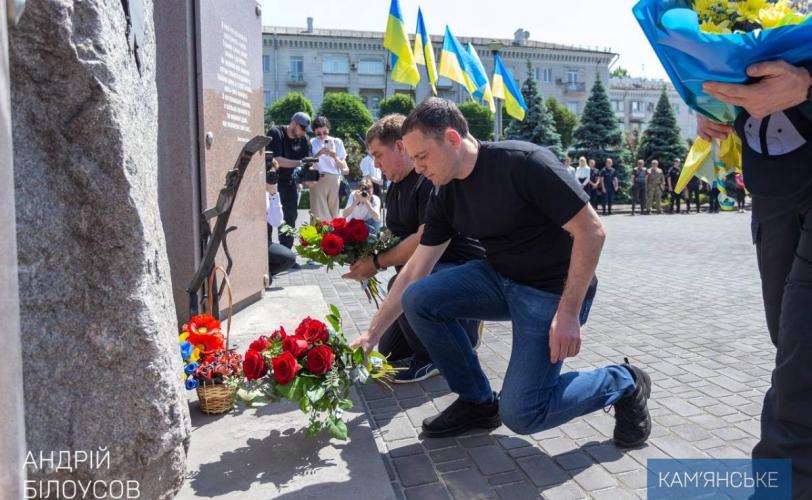 Міський голова Андрій Білоусов разом з начальником Кам’янської РВА Олегом Гапічем, воїнами-захисниками, керівниками силових структур Кам’янського району та молоддю провели пам’ятний захід біля меморіалу на Майдані Героїв.