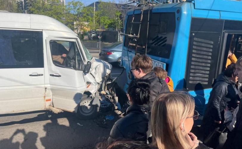 Вранці у четвер, 23 квітня, у Дніпрі на Набережній Перемоги сталася серйозна аварія за участі громадського транспорту – маршрутки та тролейбуса.
