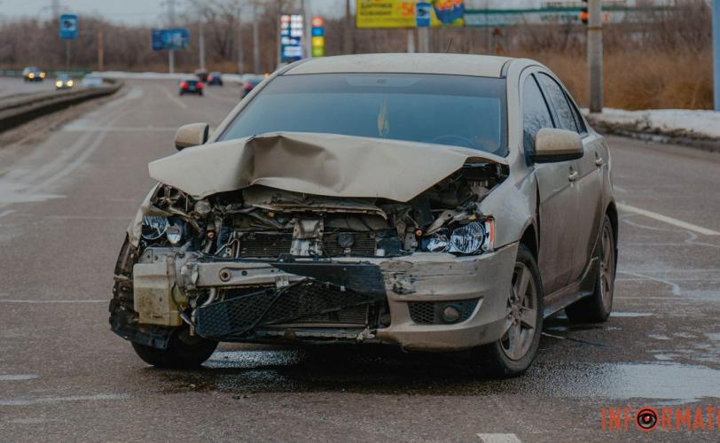 Mitsubishi рухався в бік Кайдацького мосту. Автівка зазнала пошкоджень внаслідок удару. У неї розбиті капот, бампер, фари, моторний відсік та радіатор. На дорозі лежать уламки від машини. Водіям варто бути обережними на цій ділянці. Усі причини аварії з’ясують згодом.