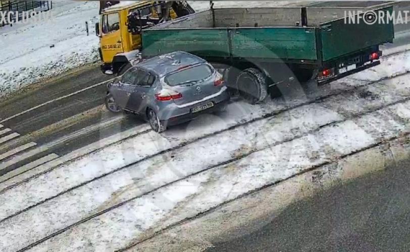 У неділю, 25 січня, у Дніпрі поблизу перехрестя проспекту Богдана Хмельницького та вулиці Корейської сталася ДТП. Дорогу не поділили два автомобілі - Renault та вантажівка. Відео моменту аварії потрапило на камеру відеоспостереження.